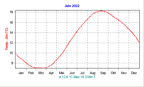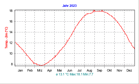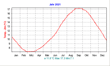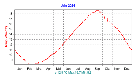 Die aktuellen Diagramme der Wetterstation Hard am Bodensee - Temperatur: 200 cm Tiefe