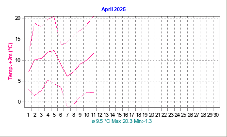 Die aktuellen Diagramme der Wetterstation Hard am Bodensee - Temperatur